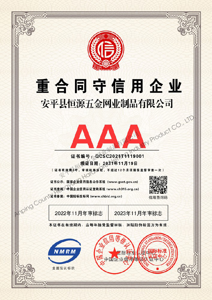 多年來,安平縣恒源五金網(wǎng)業(yè)制品有限公司堅持“科技興企、質(zhì)量立業(yè)”的經(jīng)營理念和“誠心為本、客戶至上”的合作宗旨,優(yōu)化生產(chǎn)工藝,打造優(yōu)質(zhì)產(chǎn)品,提供完善的服務,受到國內(nèi)外客戶的一致好評,產(chǎn)品行銷全國各地,并出口美國、德國、韓國、日本、臺灣等國家和地區(qū)。